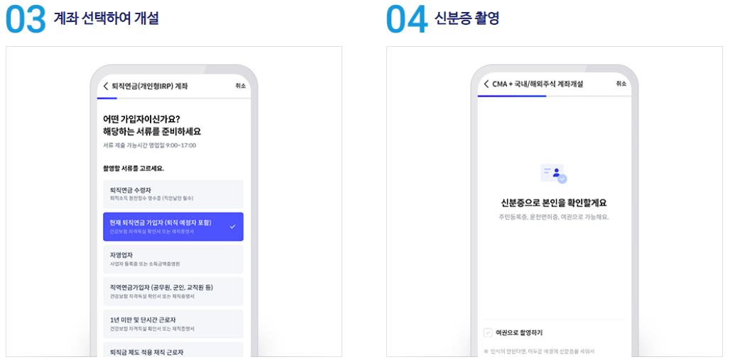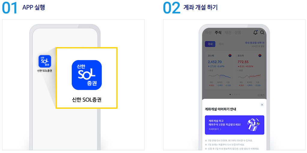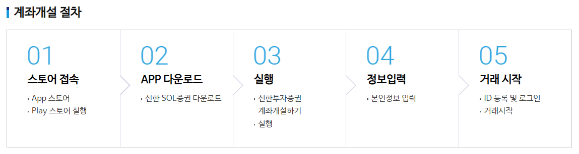 절차: 인터넷 뱅크 계좌 연결 → 증권사 홈페이지(앱) 접속(설치) → 계좌 개설 신청