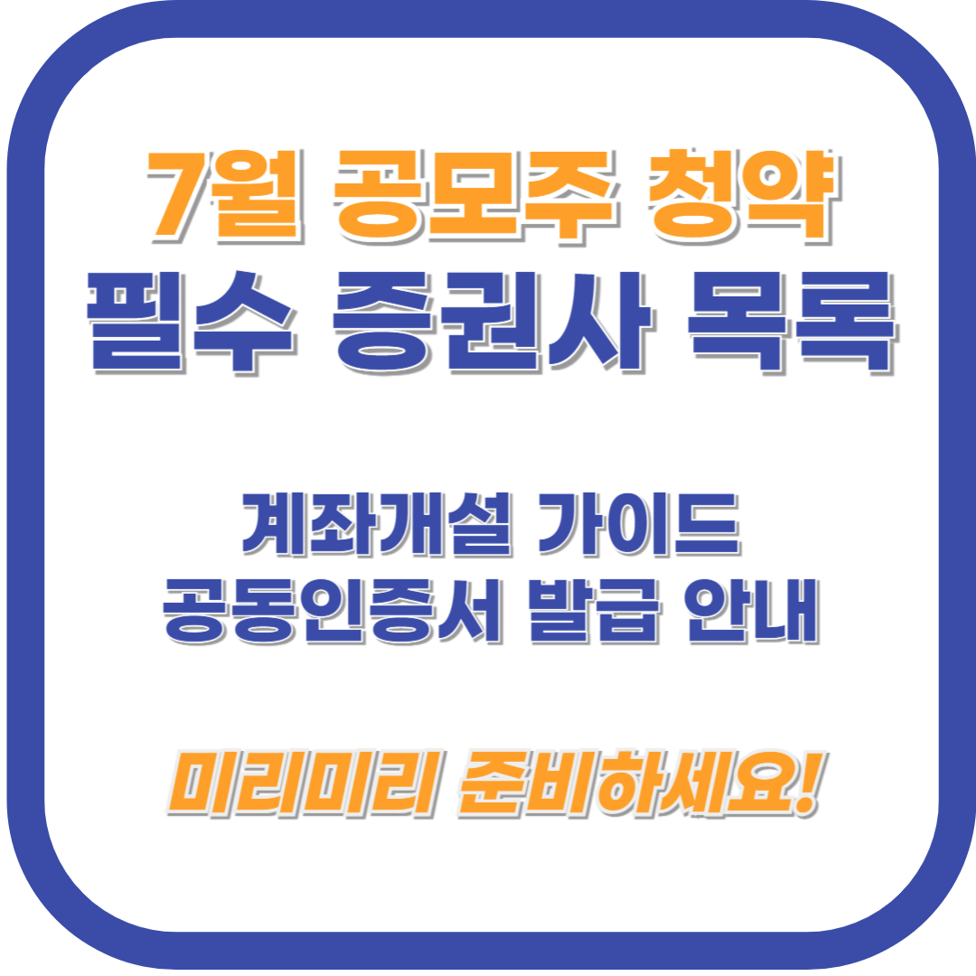 이에 6월 공모주 청약 이상의 참여자가 몰릴 수 있기 때문에 7월 공모주 청약 참여 계획이 있으신 분들은 필수 증권사의 계좌를 미리 개설해 두는 것이 중요합니다.