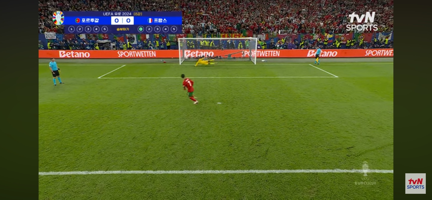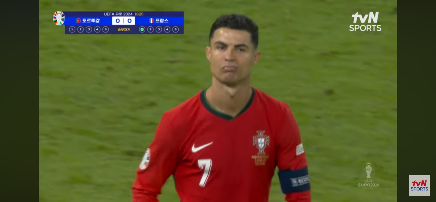 또, 뭔가 주춤주춤. 호날두 스러운 스텝으로 유로 2024 마지막 골맛을 보네요. 지난 PK 실축의 기억 때문인지, 표정이 썩 만족스러워 보이지는 않지만 그래도 마지막 승부차기를 실축으로 마무리하지 않은게 다행이지 싶습니다.