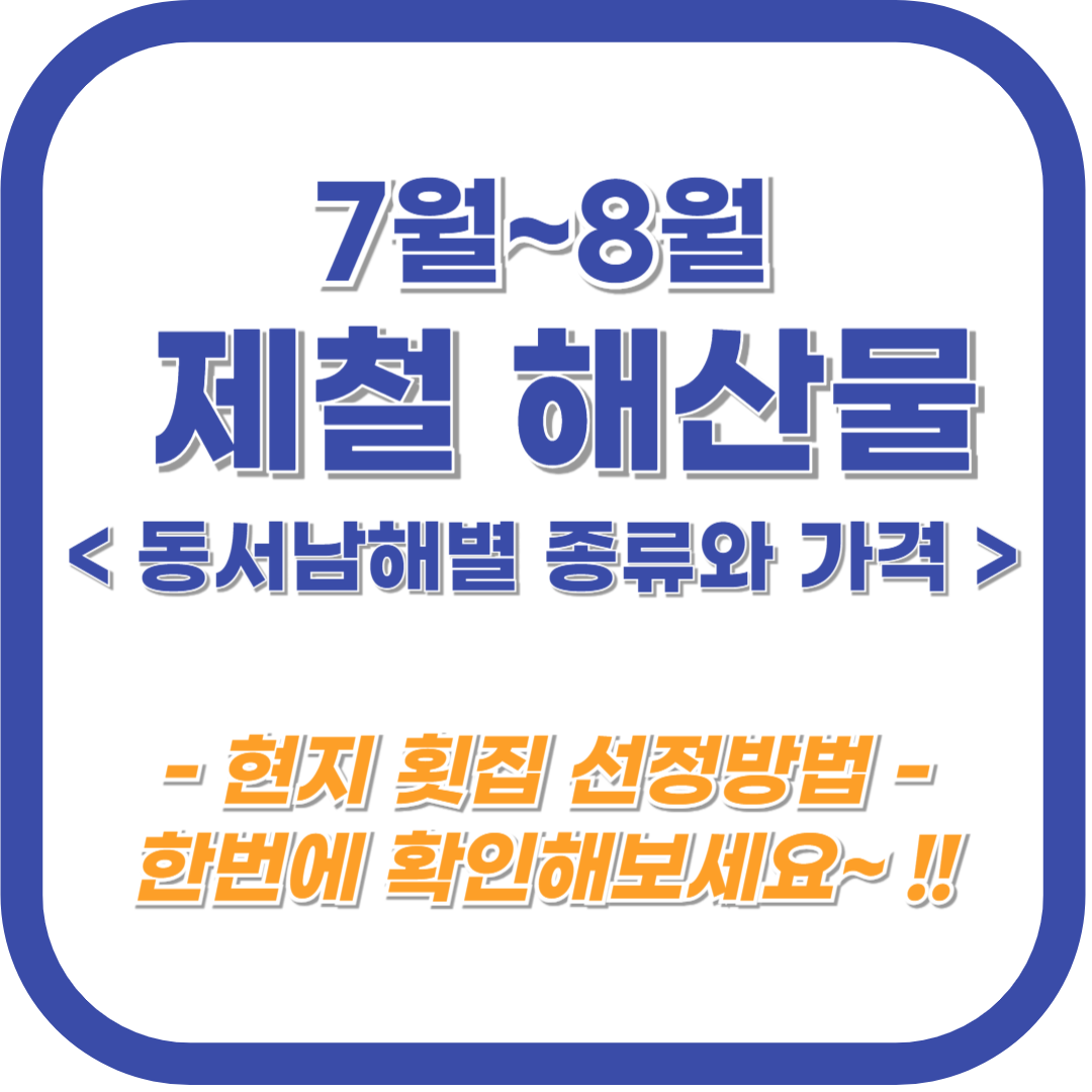 휴가시즌이 시작되는 여름이 돌아왔습니다. 국내여행으로 휴가지를 선택한 많은 분들이 바닷가로 향하고 계실텐데요. 여름에 먹는 제철 해산물은 여느 보약보다 낫다고 하죠 ^^ 오늘은 여름 제철 해산물의 종류, 주요 산지와 가격에 대해 알아보겠습니다.