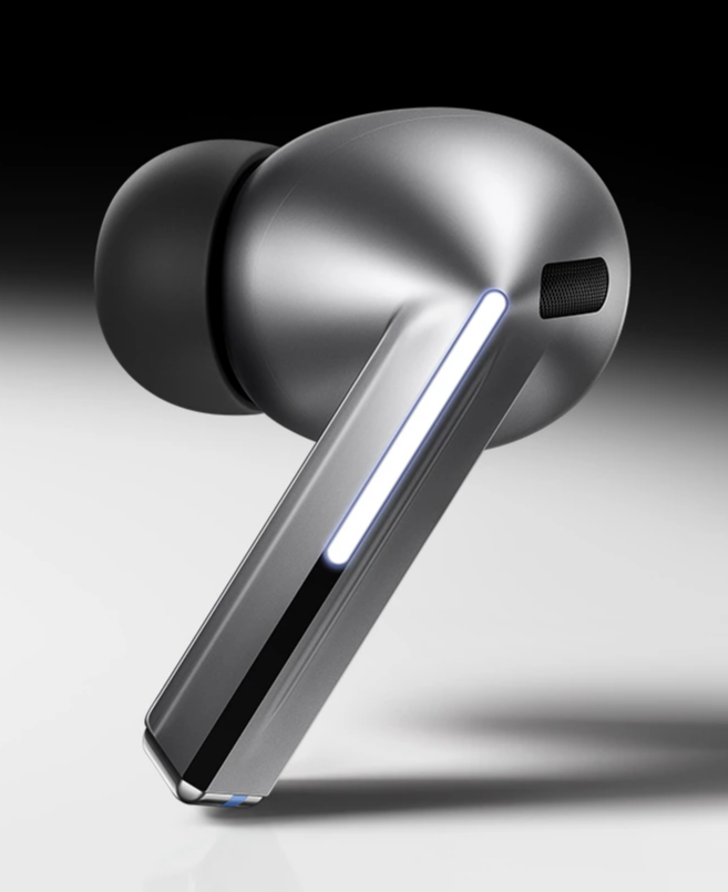버즈3프로와 버즈3 모두 실버와 화이트 컬러가 제공되는데요, 저는 개인적으로 실버쪽이 조금 더 끌립니다. 다른 웨어러블과도 깔맞춤이 가능한 컬러네요. 또한 버즈3 라인만의 특징, '블레이드 라이트'를 볼 수 있기도 합니다.