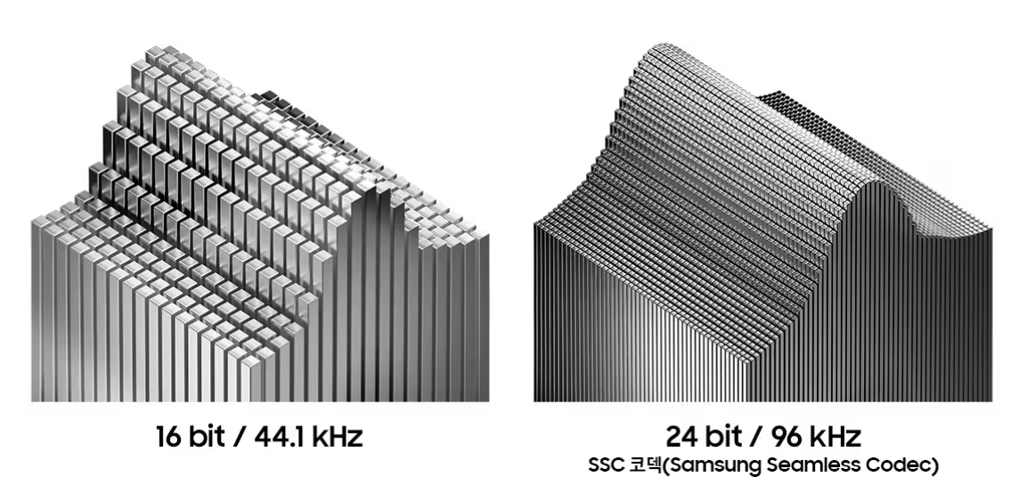 사운드 스펙은 갤럭시 버즈3 프로와 버즈3 동일합니다. 스펙상 최대 24-bit/96 kHz 오디오 까지 지원한다고 하는데요, 버즈2 프로의 스펙(24bit)과 크게 다르지는 않습니다.