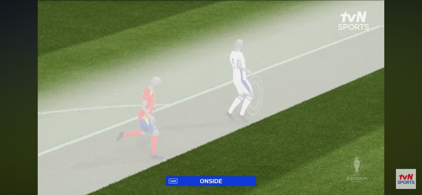 굉장히 간발의 차이로 들어간 골이었기에 VAR 을 거쳤고, 결과는 온사이드 - 얼마 남지 않은 경기는 속행되었고. 스페인의 수비를 더이상 뚫어내지 못한 잉글랜드는 그대로 경기를 마쳐야 했습니다.