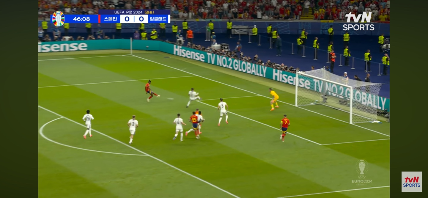 후반전이 시작하자마자, 스페인이 먼저 골문을 열었습니다. 페널티 박스 우측으로 낮게 깔려온 크로스를 니코윌리암스가 그대로 골로 연결시키며 벼락같은 첫 골을 넣었는데요.