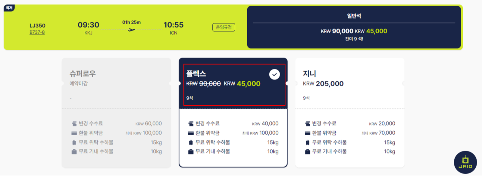 - 대상 운임 : 슈퍼로우 전체 / 플렉스 일부 한정
