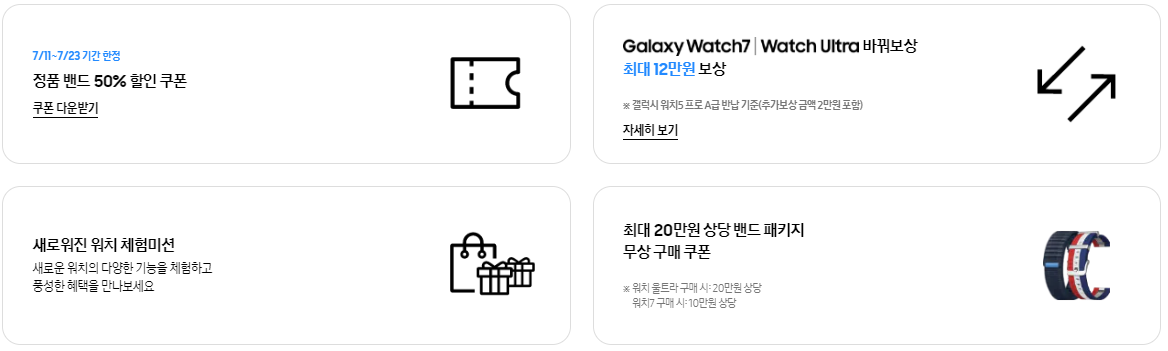또한 사전구매 기간동안 워치7과 워치 울트라를 구매하시는 분들께는 추가적인 혜택이 제공되는데요, 갤럭시 워치 울트라 정품밴드 가격이 96,000원 임을 감안하면 꽤 괜찮은 혜택들이 포함되어 있으니, 구매계획이 있는 분들은 사전구매 기간을 잘 활용해 보시는 것도 좋을 것 같습니다.