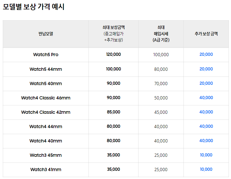 - 보상가는 반납 모델별 상이합니다.