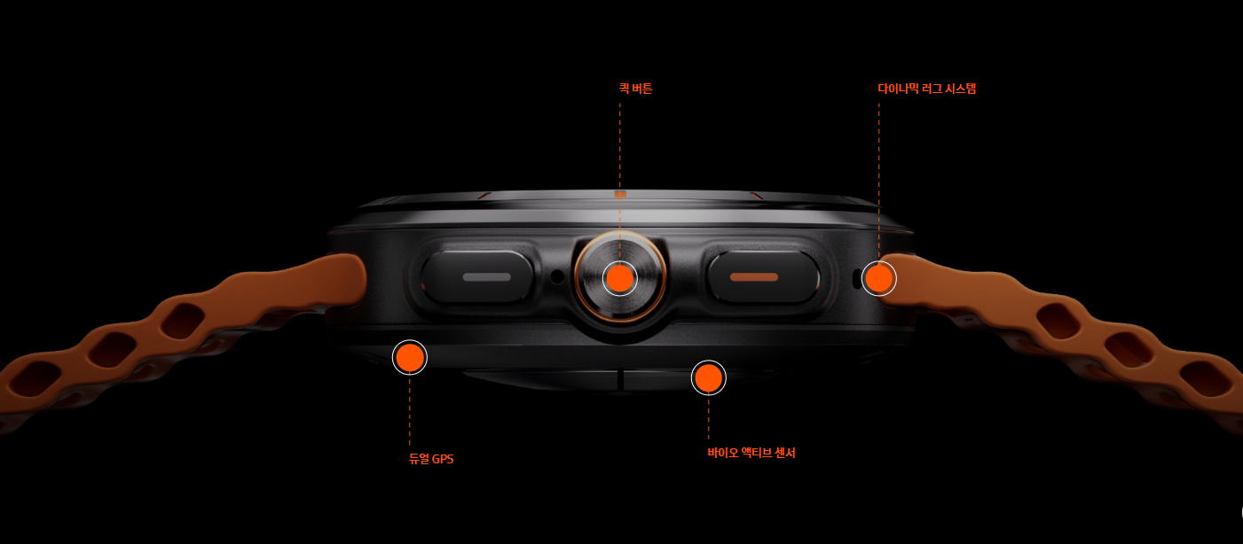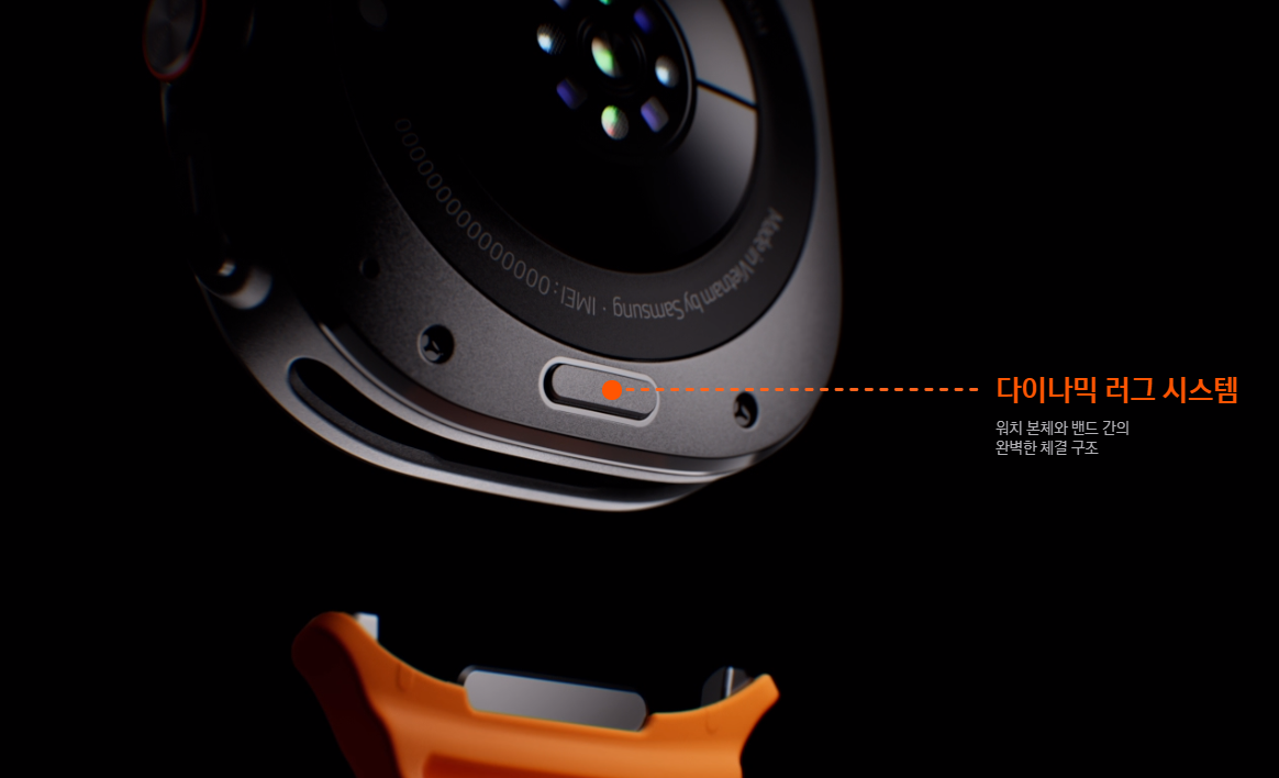 워치 울트라에 적용된 다이나믹 러그 시스템 역시 울트라 사용자에게 굉장히 큰 만족감을 줄 수 있는 부분입니다. 다이나믹 러그 시스템은 기존의 워치 모델에는 없는 기능으로, 밴드의 탈착을 굉장히 부드럽고 손쉽게 만들어 주는데요. 많은 분들이 워치 울트라의 기능 중 꽤 만족스러운 부분으로 손꼽는 기능입니다.