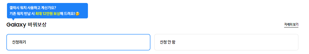이번에 출시된 갤럭시 워치7과 워치 울트라는 기존 워치를 반납하는 보상판매 '바꿔보상' 으로 최대 12만원까지 할인혜택을 받을 수 있습니다. 가지고 있던 갤럭시 워치 모델을 반납하고 구매하면 보상금액만큼 돌려받으시는 건데요. 워치7 울트라 기변 하시는 분들에게 굉장히 매력적인 금액을 제시합니다.