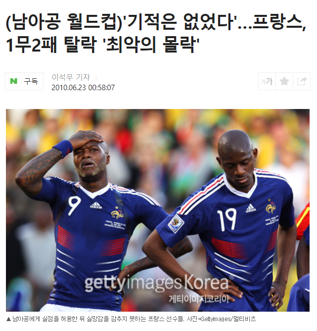 정말 충격적인 결과이지만, 전 대회 준우승팀인 프랑스가 조별리그에서 조 최하위 성적으로 탈락을 해버린 거죠.