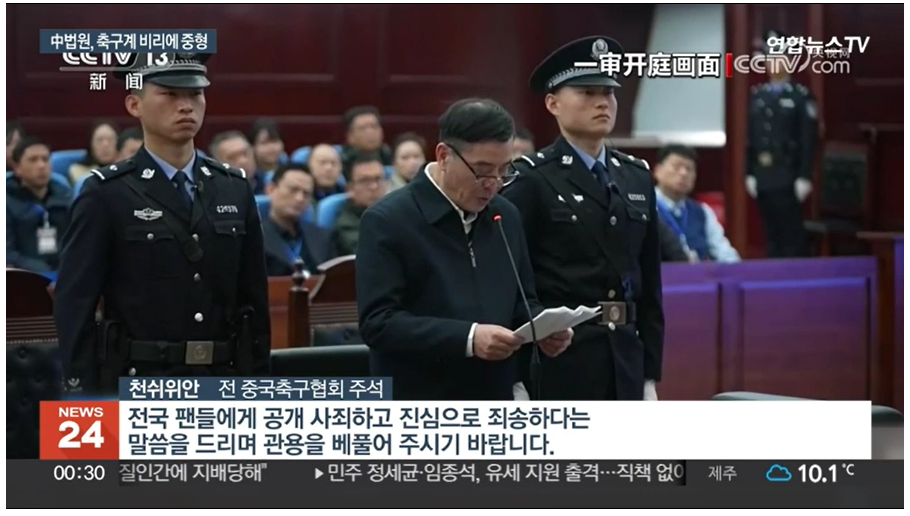 참다 못한 중국 정부는 2009년 축구계 비리척결을 위한 대대적인 수사를 단행합니다. 그 과정에서 여러 고위 인사들이 체포되기도 했는데요. 당시 전 중국 축구협회 주석 천쉬쉬안(샤오티엔)과 전 부주석 장젠을 비롯한 다수의 고위인사가 불법도박, 승부조작, 뇌물 수수 등의 혐의로 기소되었습니다.