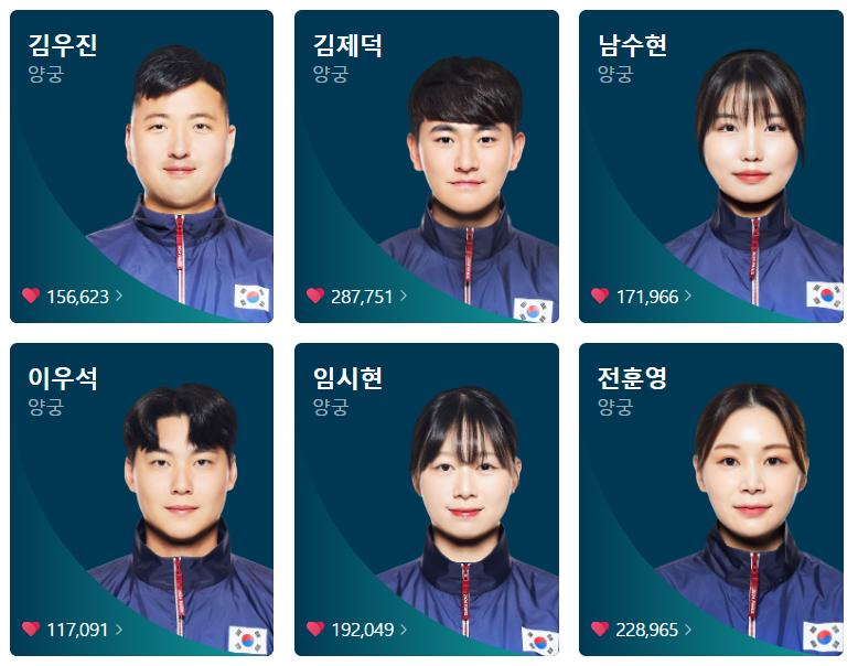 지난 올림픽의 대표팀의 전력도 굉장했지만, 랭킹라운드 부터 세계 신기록을 갈아치운 2024년 한국 대표팀의 전력도 굉장합니다. 지난 올림픽의 메달을 획득하며 이미 익숙한 얼굴도 있을텐데요.