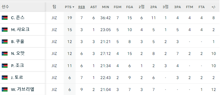 1차전 경기 결과를 보면, 선수 전원이 고른 득점과 기록으로 팀의 승리를 이끌었는데요.
