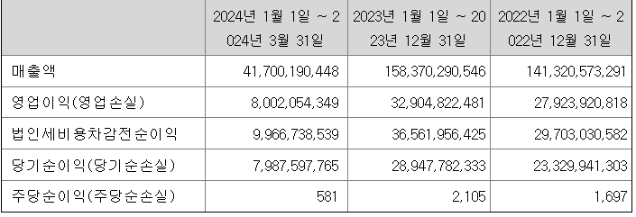 | 매출액 | 1,580억 7,971만원 (2023) |