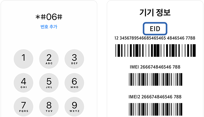 - 다이얼 화면에서 *#06# > 기기정보에 EID가 있으면 eSIM 사용가능