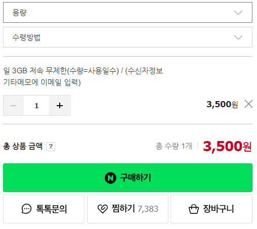 유심사는 트립닷컴과 같은 서비스에 비해 상대적으로 중소규모의 로밍서비스를 제공하는 업체인것 같습니다. 노출되는 상품의 가격은 굉장히 저렴하지만 로밍서비스의 용량과 기간을 선택하면 위 처럼 금액이 변경되며, 계산해 보면 차액이 크지 않습니다.