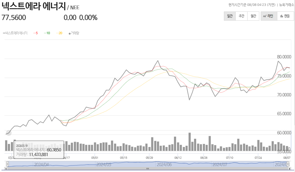 미국 플로리다주 주노 비치에 본사를 둔 세계 최대의 재생 에너지 기업 중 하나입니다. NextEra Energy Resources는 NextEra Energy의 자회사로, 풍력, 태양광, 천연가스, 원자력 등 다양한 에너지 자원을 개발하고 운영합니다. 2023년 매출은 약 190억 달러로, 전년 대비 약 6% 증가한 수치입니다.