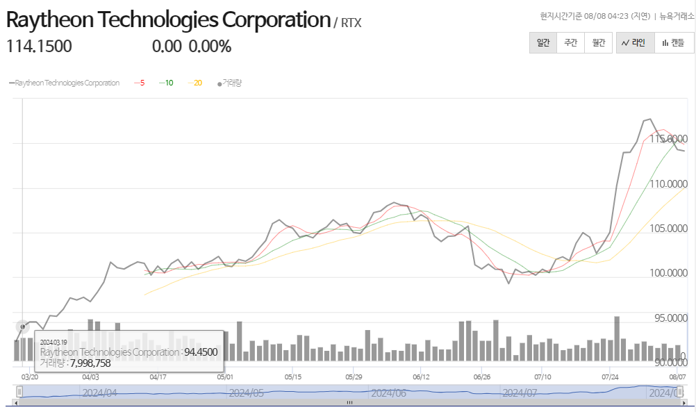 미국 메사추세츠주 워싱턴에 본사를 둔 글로벌 항공우주 및 방위 기업입니다. 2020년 Raytheon Company와 United Technologies Corporation의 합병으로 설립된 이 회사는 첨단 기술을 바탕으로 다양한 방위 및 항공우주 솔루션을 제공하며 2023년 매출은 전년 대비 4% 증가한 약 670억 달러였습니다.