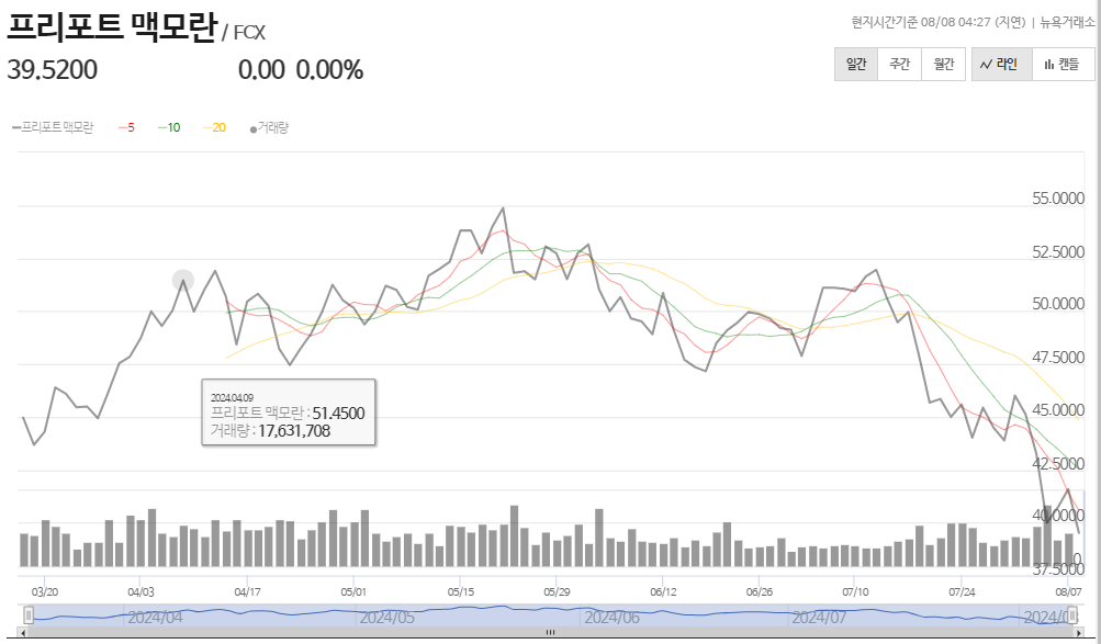 미국 애리조나주 피닉스에 본사를 둔 세계 최대의 구리, 금, 몰리브덴 채굴 회사 중 하나입니다. 북미, 남미, 아시아 등 여러 대륙에서 광산을 운영하며, 글로벌 금속 시장에서 중요한 역할을 하고 있습니다. 특히 구리 생산에서 세계 시장 점유율이 높아, 구리 가격에 큰 영향을 미치는데요. 매년 꾸준한 매출과 수익을 기록하고 있으며, 2023년 매출은 약 230억 달러로 전년 대비 약 7%가 늘어났습니다.