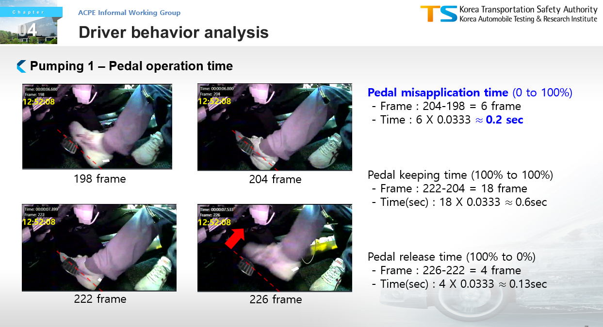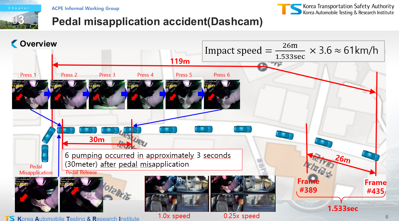 이번 사고의 내용은 제출된 영상의 장면들을 분석한 것으로, 영상의 이미지들을 보면 운전자가 수 차례 페달을 밟고 있는 장면을 확인할 수 있습니다.