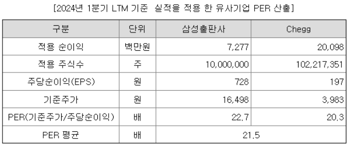 유사기업 : 삼성출판사, Chegg | PER과 주당 평가가액 산출