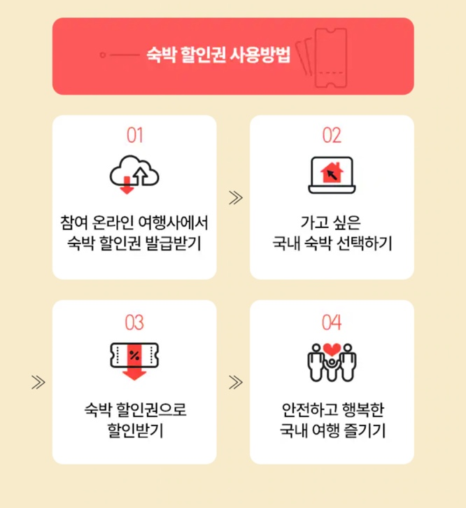 말 그대로 해외여행 인구가 늘어남에 따라 줄어드는 국내여행 수요를 늘리겠다는 목적인데요. 개인적으로 할인체감이 더 큰 비수도권역의 숙박비를 지원한다는 것이 마음에 들었습니다.