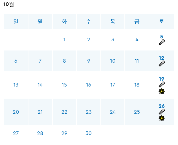 10월 공연일정과 불꽃놀이 일정