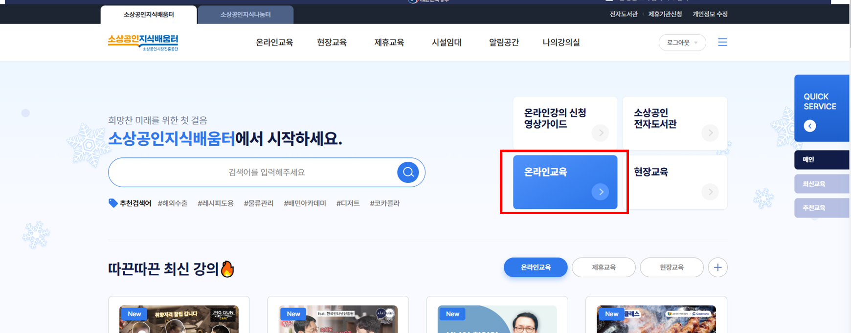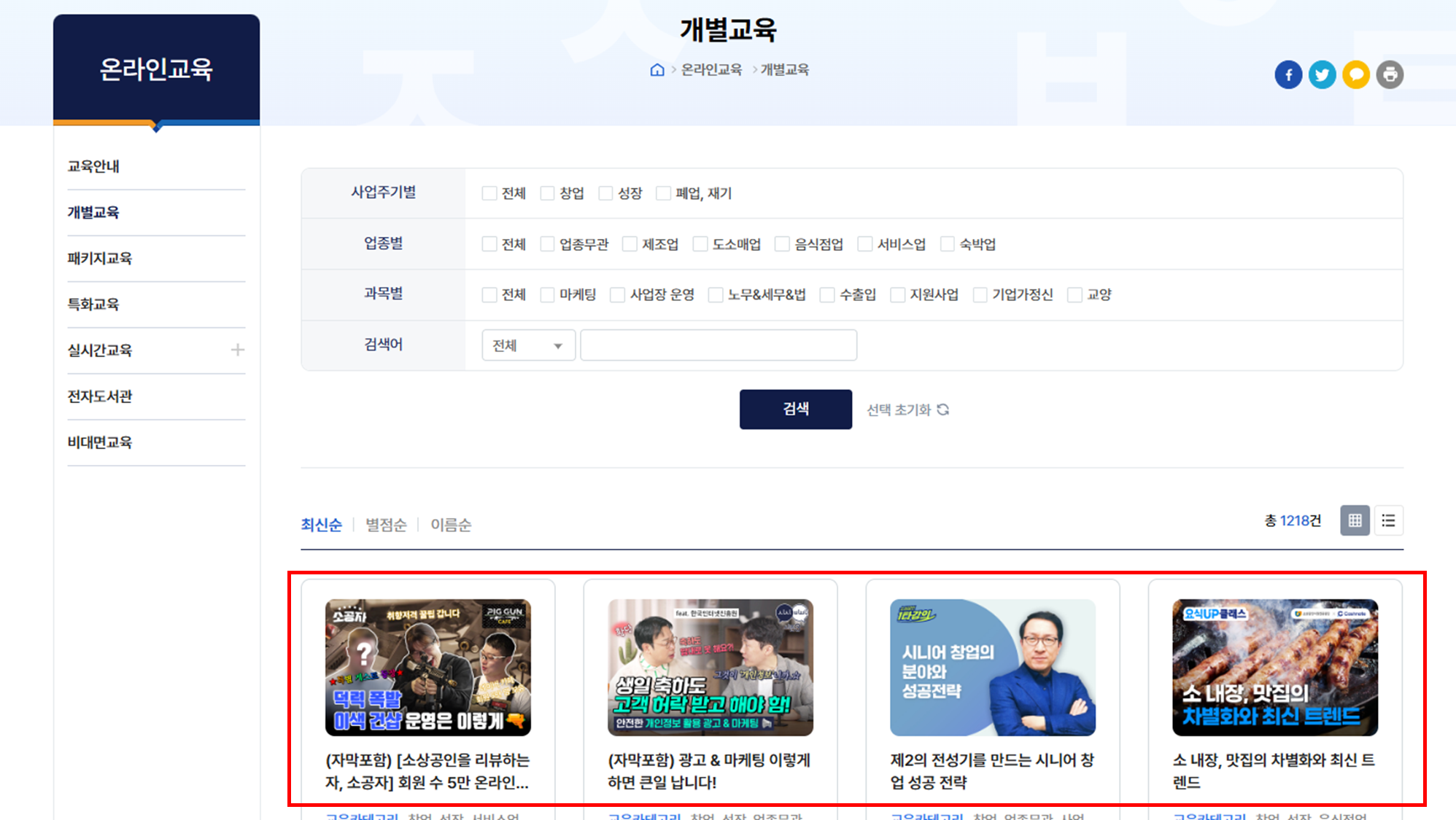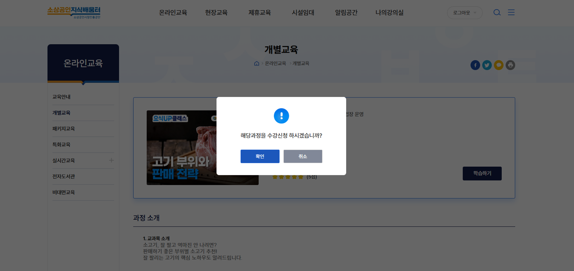 (상기 온라인 강의 버튼을 눌러 관심있는 개별교육 페이지로 이동합니다.)