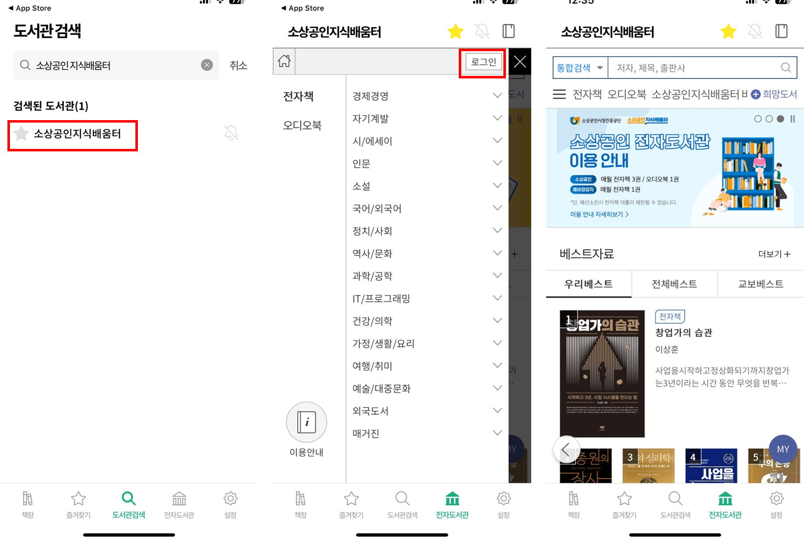 교보문고 전자도서관 설치 및 소상공인 지식배움터 로그인