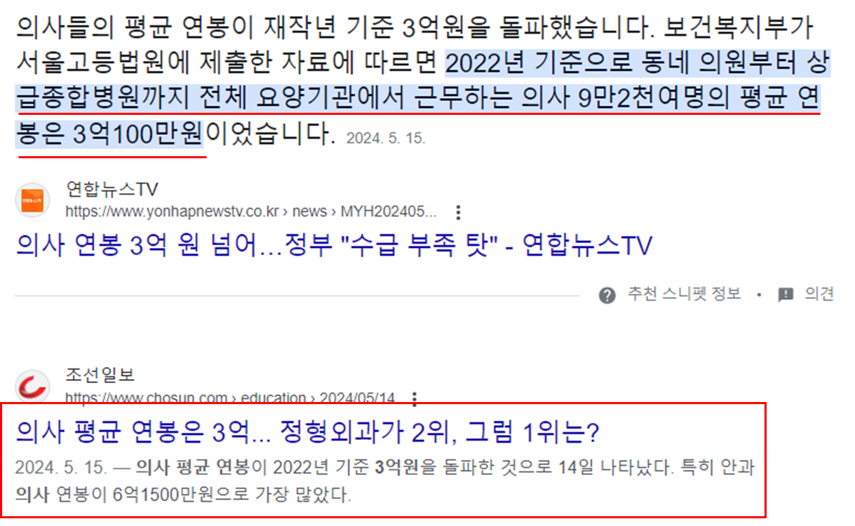 평균 연봉이 제작년에 3억을 돌파했다고 합니다. 그런데 의협에서는 저 통계가 전문의만 포함된 수치라고 합니다.